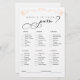 Add laughter and friendly competition to your bridal shower with this classic What’s in Your Purse? game. Featuring a stylish layout with soft blush and gold scroll accents, this card invites guests to score points based on the everyday (and unexpected!) items found in their bags. A perfect activity for tea party, garden, or vintage-themed showers.