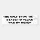 What Stays in Vegas? My Money Bumper Sticker