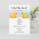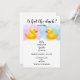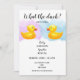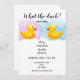Rubber duck themed gender reveal party invite with cute duck and watercolor artwork.