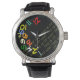 A conceptual watch with messy colour numbers and the text "what time is it?" - you can edit the design and change the black background colour