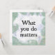A motivational inspirational typography design features the words "What you do matters" on an abstract white and light green background.