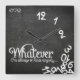 Chalkboard Whatever, I'm always on time anyway wall clock with chalk fonts with the eatlovepray logo.