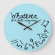 Black and light blue Whatever, I'm Late Anyway Wall clock. Black typography marker handwriting. Funny Whatever Clocks. Makes a great gift!