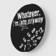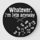 This clock is made with scrambled numbers as it reads "Whatever, I'm late anyway'.