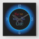 A clock witha deep blue background and a blue aqua illuminated circle. Text in rainbow colours reads "Whatever, watch this clock" Humourous referance to people who are always late. Available in square and round shapes.