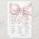 What’s In Your Purse? Bridal Shower Game. This playful activity invites guests to search through their purses and check off items from a fun point-based list, making it an easy and entertaining icebreaker for any bridal shower. The design features a soft blush pink watercolor bow in the background, adding a gentle, feminine touch while keeping the layout clean and versatile.