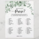 This what's in your purse eucalyptus bridal shower game is a perfect activity for a rustic bridal shower celebration. The design features beautiful watercolor green eucalyptus leaves.