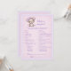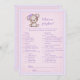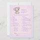 Adorable brown and purple baby bear for a girl's baby shower. What's On Your Phone baby shower game. Pink and purple blanket with purple stitched edge border for background. Templates provided on back.