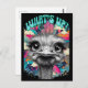 An ostrich with exaggerated features is depicted against a vibrant and colourful background, with the phrase "WHAT'S UP?" in bold letters above its head. The artwork combines elements of whimsy and pop art styles, creating an eye-catching display.