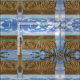 Two photographs taken during wheat harvest combined together to make an interesting unusual natural block pattern for fabric. Perfect for pillows and home decor projects. The White clouds against the blue sky play off the linear patterns of the yellow and brown wheat rows.