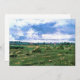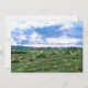 Wheat Fields with Haystacks by Vincent van Gogh is a vintage fine art post impressionism nature landscape painting. Fields of wheat and haystacks on a farm during the harvest. A sunny summer day with puffy white clouds in the blue sky.