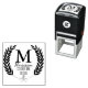 Elegant wheat laurels frame with monogram letter and full last name in script with street address and zip code. Great for wedding invitations or any office needs!