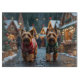 This festive design captures the joyful spirit of the holiday season, featuring an adorable dogs.Nestled in a winter wonderland, complete with a decorated Christmas tree, and beautifully wrapped presents. Snowflakes gently fall, adding a magical touch to the scene, while the vibrant colours of the holiday decorations create a warm and cheerful atmosphere.