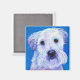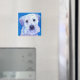 This magnet features a soft coated wheaten terrier in shades of white, blue, purple & pink. Her eyes are a deep rich brown. How can you resist that face? I created the original portrait in watercolor, ink & colour pencil on watercolor paper.