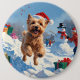 Wheaten Terrier Running in Snow with Christmas Hat 6 Cm Round Badge