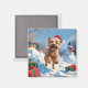 Wheaten Terrier Running in Snow with Christmas Hat Magnet