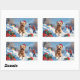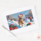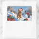 Wheaten Terrier Running in Snow with Christmas Hat Rectangular Sticker