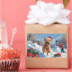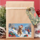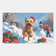 A joyful Soft Coated Wheaten Terrier runs through the snowy winter scene, wearing a festive red Christmas hat. This charming design highlights the breed’s soft flowing coat, cheerful spirit, and affectionate nature while capturing the warmth and joy of the holiday season. A delightful winter moment full of festive cheer.