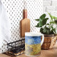 A fine art Bone China Mug with the painting Wheatfield with Crows (1890) by Vincent van Gogh (1853-1890). A contemplative representation of a wheat field with a meandering dirt path under a vast blue sky, is adorned with a haunting flock of crows. His expressive brushstrokes and bold color choices bring the scene to life, allowing you to immerse yourself in the beauty and emotion of this renowned artwork. Considered his last painting, but art historians differ on this.