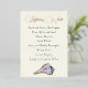 Guest list table seating cards for a beach themed wedding reception. Ecru colour with black printed text for names of guests. Rose gold foil lettering at the top is for the table name, or number. This sample has a lightning whelk seashell at the bottom and the name of the table is also “lightning whelk”. List names as you wish and add / remove spaces to fit all names needed for this table.