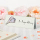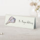 Lightning whelk seashell, tented place cards made of plastic. Upscale ecru signs have a place for adding the guest’s name in printed, dark grey font. Change the font style in the design tool if you wish. A single whelk shell decorates the left side on the front. Signs come in other sizes.