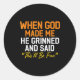 When God Made Me He Grinned Humorous Funny Sarcast Classic Round Sticker
