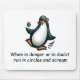 When in danger or in doubt, run in circles and scream. - This silly penguin has some useful advice! See this penguin humour on our TShirts & Products.