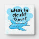 When in doubt travel. Motivational quote at blue cloud background with aeroplane, brush typography for poster, t-shirt or card. Vector calligraphy art. | Bigstock® - All Rights Reserved.