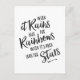 Inspirational postcard displaying the phrase "When it rains look for rainbows. When it's dark look for stars." in black brush script with an organic ink texture to achieve an authentic, hand lettered look.