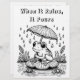 When it rains, it pours, quote. Cute frog sitting on a lily pad holding an umbrella in a rain storm.