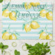 When life gives you lemons, make lemonade in chic script lettering on lemon print background.
