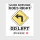 Words of wisdom: "When nothing goes right, go left!", illustrated with a Turn Left traffic sign.