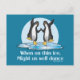 When on thin ice, might as well dance. Funny and witty slogan / saying with two penguins dancing together on cracked ice. What's the sense of worrying when you can't change the circumstances. Don't worry, be happy! With a blue background. Winter Penguin Design.