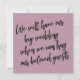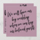 This suite's distinction is due to the bold, casual handwritten script font used for accent phrases. If you're in the position of needing to inform your wedding guests that you've had to change your big date, here is a bold option. In this piece, the hand-lettered script font was used to create simple typography graphics. On the front is "We will have our big wedding when we can hug our beloved guests" and on the back, "New Plan". Use the template fields to add your personal details and make this modern design your own. The background can be changed to any colour you prefer. Please reach out with any special requests or for customising assistance. // 105 //