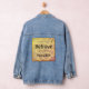 Blue Jean Jacket with an encouraging quote "When you believe anything is possible." It has faint background with sunflowers and a gold cross!