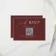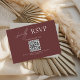 Modern love deserves a modern RSVP card. This elegant burgundy wedding RSVP card features a clean minimalist layout with timeless white typography and QR code. Ideal for contemporary, romantic, or upscale wedding themes, the design balances simplicity with emotional warmth. Customisable for your names, date, venue, and all key details.