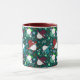Cute gnomes this holiday season! Grab a cup of your favourite something warm in this fun mug! Gnomes in modern colours of teal, lime green, aqua blue, deep red and maroon surrounded by candy canes, snowflakes, poinsettia flowers and gifts. Great for gifting to kids and adults alike! Handlettered sayings include "where my gnomies at?" and "ho ho ho" . Non-traditional Forest WinterGreen Background. Choose Your Inside Colour!