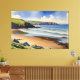 “Where Sky Meets Quiet Sand” – Devon Seascape. A dreamy portrait of Devon, England, painted in stylised watercolour tones of sea blue, sandy beige, and meadow green. This seascape captures the soft hush of morning tide and open skies, inviting the viewer into a tranquil moment of connection with the coastal landscape.