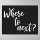 Where To Next | Minimalist Travel Typography Art Poster in White on a Black Background