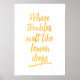 Where troubles melt like lemon drops in yellow watercolor and modern typography, well known lyrics from 'somewhere over the rainbow'. Great inspiring art for a kid's bedroom!