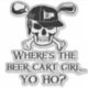 Where's The Beer Cart Girl? All golfers want to know! A fun sticker featuring a pirate skull with crossbones and clubs, and asking that all-important question. A great gift idea for the pirate golfer.