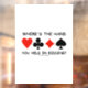 If you have ever had a bridge partner who bid wildly at the bridge table, you will enjoy this bridge humour window cling. Design features all four card suits (heart, club, diamond, spade), along with the query that a declarer often says to dummy, "Where's The Hand You Held In Bidding?" Make others do a double-take at the bridge table with a dose of tongue-in-cheek bridge attitude with this window cling!