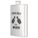 The product is a good size and came exactly as it was pictured.  The lid is not attached to the flask, which could be dangerous on drunken nights... The print came out surprisingly well and looks very sharp.  Would definitely recommend.