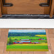 This doormat welcomes you and your guests with a bucolic farm scene from Whidbey Island, Washington. The red barns dot the beautiful green and gold grasses of Ebey's Prairie, which you can view from the Ebey's Landing trail. This beautiful and historic agrarian scene from the Pacific Northwest is a great way to spruce up your porch and help keep your floors clean.