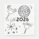 Whimiscal Doodles Hello 2026 New Years Gold Napkin