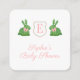 Enhance your baby shower invitations with a hand-painted watercolor green boxwood bunny insert card, featuring a pink bow and a personalised monogram. This charming card includes a QR code for easy access to additional details, adding a whimsical and personalised touch to your celebration. Preppy hand painted watercolor boxwood topiary bunny rabbit for this baby shower enclosure card design, which also features a QR code. You can use this to put the registry link, or the RSVP.