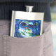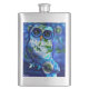 Whimsical Abstract Owl Blue Floral Teal Blue Green Hip Flask