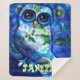 Whimsical Abstract Owl Blue Green Personalised Sherpa Blanket