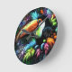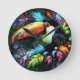 Whimsical Abstract Toucan Bird Toucans Teal Orange Round Clock