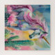 A modern abstract painting featuring a whimsical unicorn surrounded by pastel-coloured cacti and succulents. The unicorn, painted in flowing lines and vibrant colours, stands out against the soft tones of blush pinks, mint greens, and pale blues in the desert plants. This playful, imaginative composition combines the mystical aura of the unicorn with the organic beauty of desert flora, creating a dreamy, magical scene with a contemporary artistic touch.